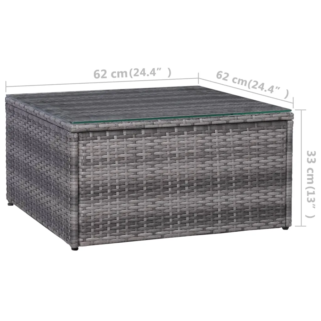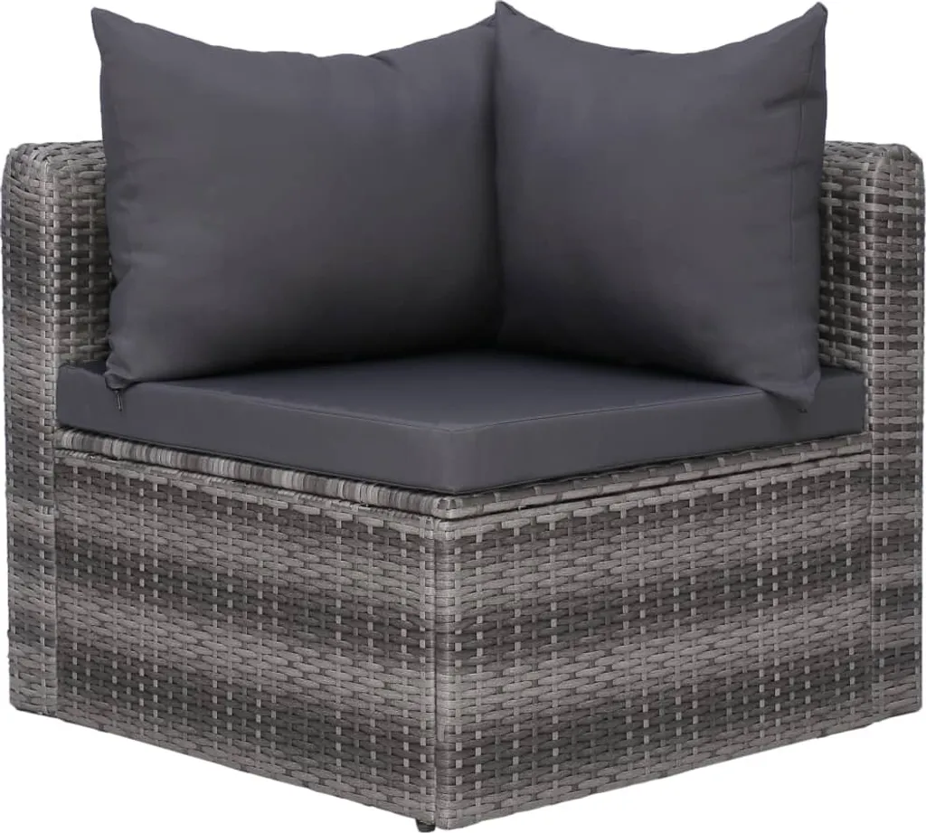 Dieses Sofa-Set aus PE-Rattan, bestehend aus 2 Sofa-Eckelementen, 2 Sofa-Mittelstücken, 1 Couchtisch, 4 Sitzpolstern und 6 Rückenkissen, bietet einen großzügigen Sitzbereich und verleiht gleichzeitig Ihrem Garten oder Ihrer Terrasse einen modernen Stil.
