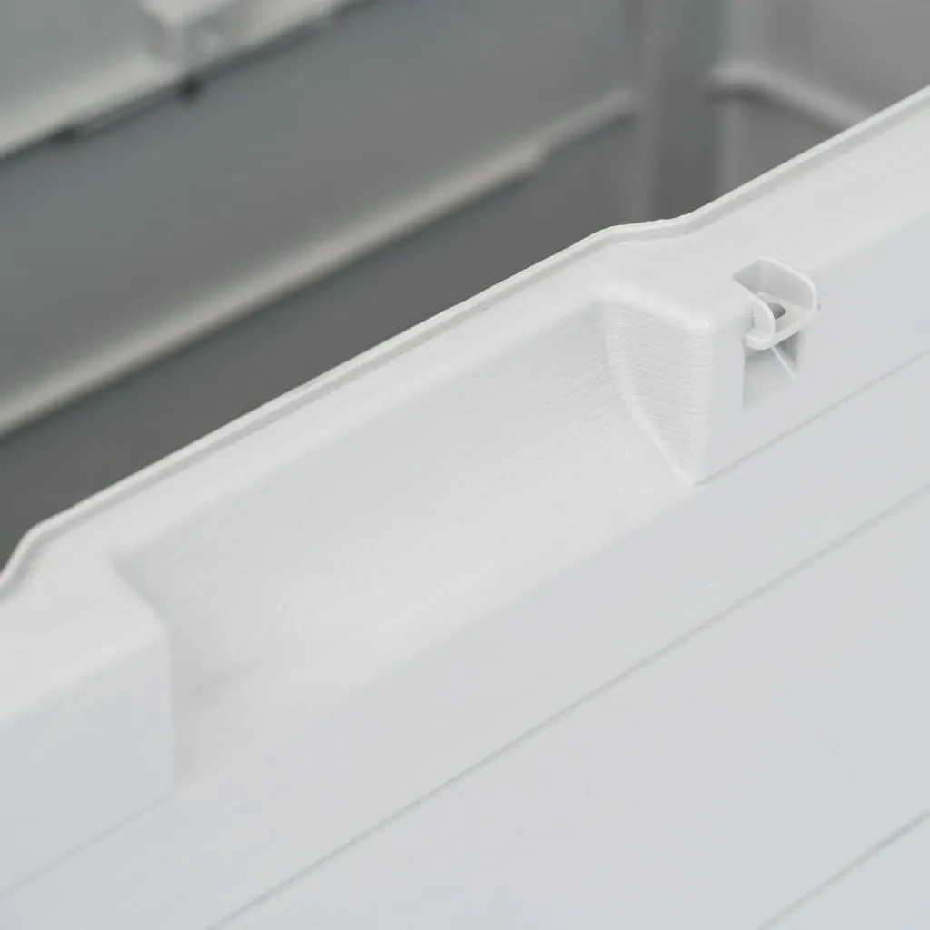 Die Aufbewahrungsbox besteht aus strapazierfähigem, wetterfestem Kunststoff, wodurch sie sich sowohl für den Innen- als auch für den Außenbereich eignet. Durch das schlichte und dennoch klassische Design passt die Aufbewahrungsbox gut in jedeNachbildungumgebung.
