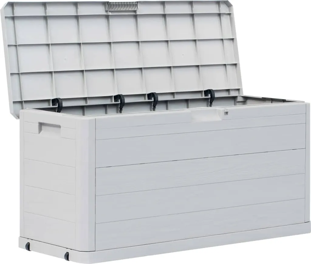 Diese stilvolle Aufbewahrungsbox ist die ideale Lösung, um Ihr Haus zu entrümpeln. Die geräumige Gartenbox ist ideal zum Verstauen von Kissen, Auflagen, Decken, Spielzeug und anderen Gegenständen, über die man nicht mehr stolpern möchte. Dank ihrer soliden Konstruktion kann sie auch als Werkzeugkasten verwendet werden.