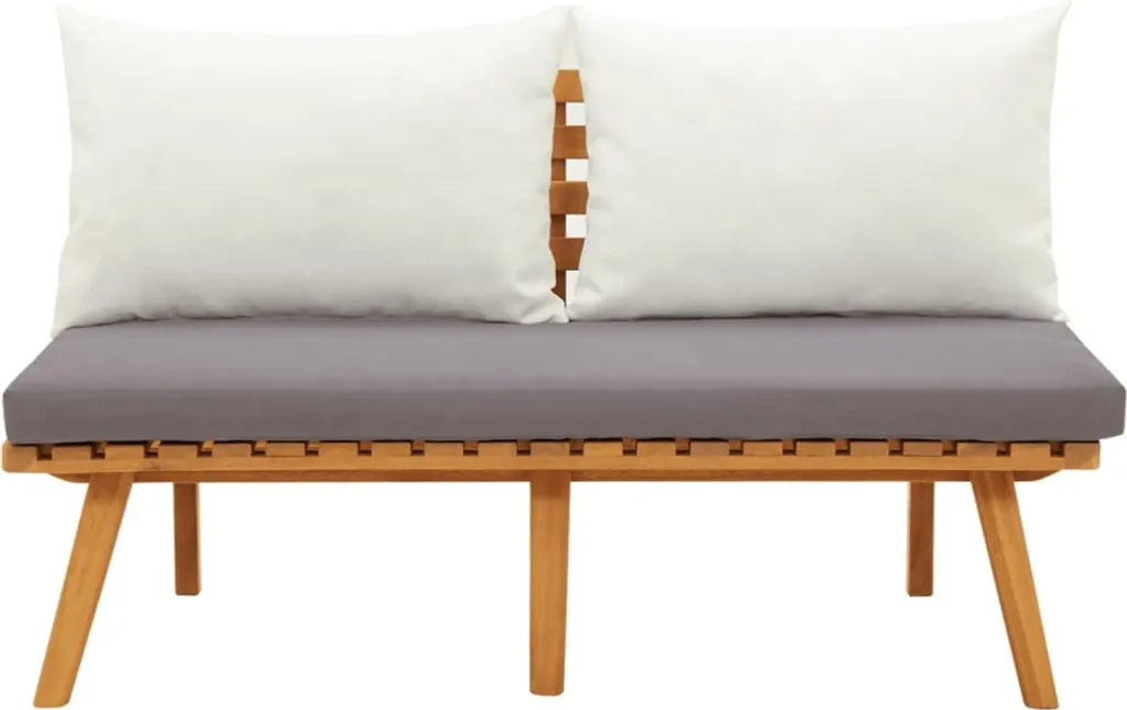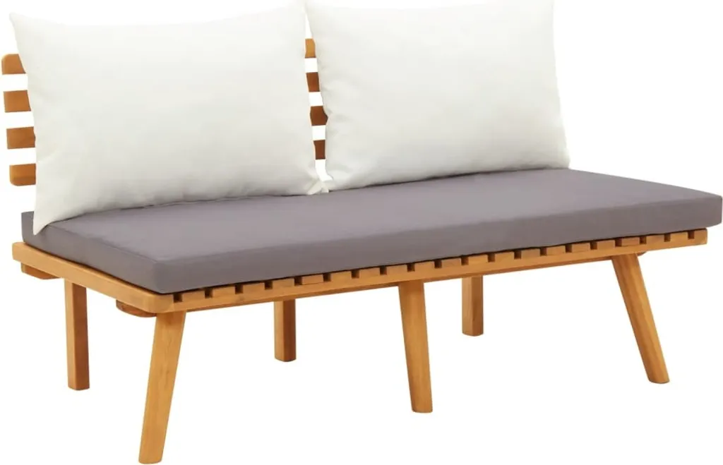 Die Sitzbank ist aus massivem Akazienholz gefertigt, wodurch sie robust und langlebig und somit für den Außenbereich bestens geeignet ist. Die dick gepolsterte Sitzauflage und die Rückenkissen sorgen für erhöhten Sitzkomfort. Darüber hinaus ist die Sitzbank leicht zu montieren.