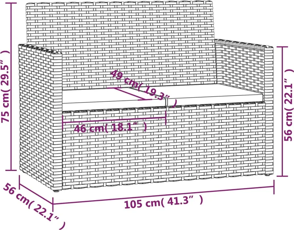- Sitzgröße: 103,5 x 48 cm (B x T)