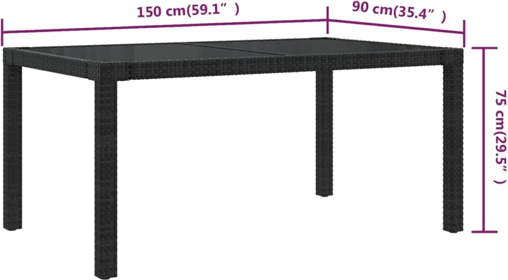 - Tischmaße: 150 x 90 x 75 cm (L x B x H)