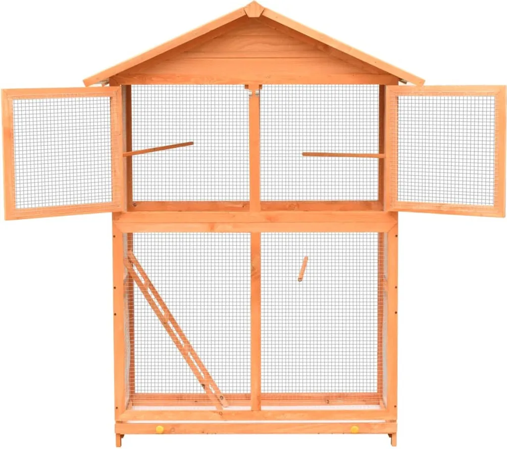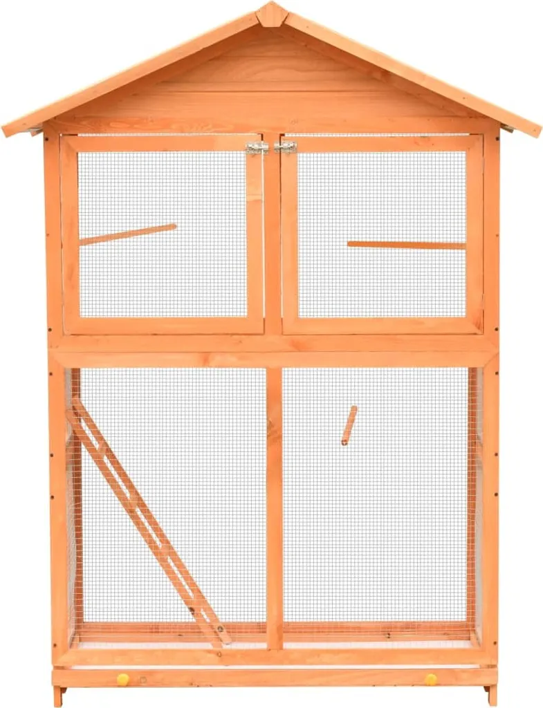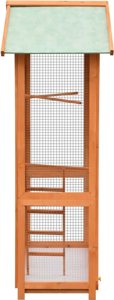 Diese qualitativ hochwertige Voliere bietet Ihren Vögeln reichlich Bewegungsraum, während das rundum befindliche Eisendrahtgitter Schäden und unerwartete Unfälle verhindert. Durch ihren Massivholzrahmen ist diese Gartenvoliere robust und langlebig. Das grüne, wasserdichte Gewebe auf dem Dach schützt vor Regen. Eine Leiter ermöglicht den Vögeln einfach auf- und abzusteigen, während die Auszugswanne auf der Unterseite die Reinigung des Vogelkäfigs erleichtert.